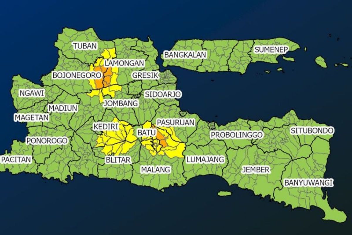 – Hujan lebat hingga sangat lebat diperkirakan terjadi di Jawa Barat, Jawa Tengah, Kalimantan Barat, Kalimantan Utara, Maluku, dan Papua.