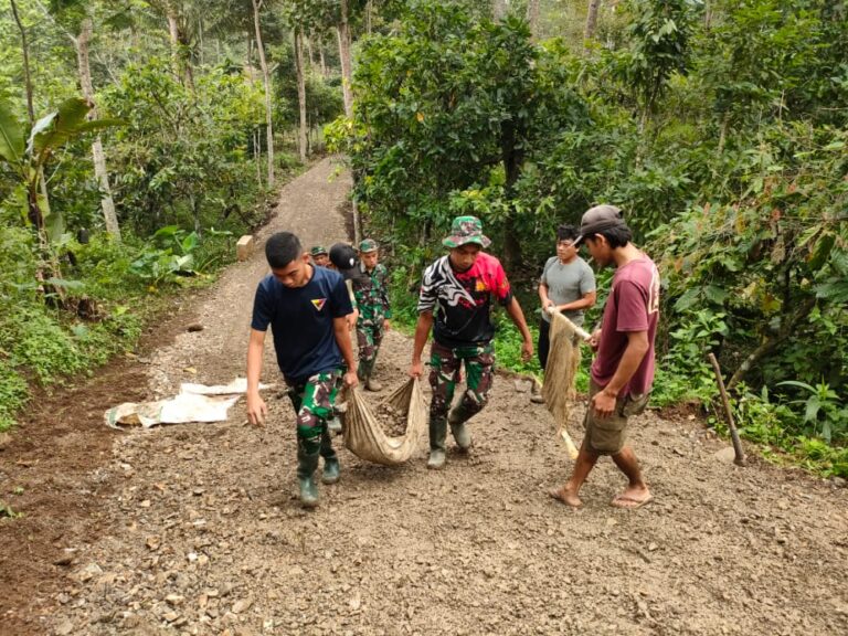 Selain fokus pada progam sasaran fisik, saat terdengar suara mobil bergemuruh kesulitan untuk bergerak anggota Satgas TMMD bersama masyarakat lainnya kompak membantu mobil pengangkut matrial untuk keluar dari kesulitannya.