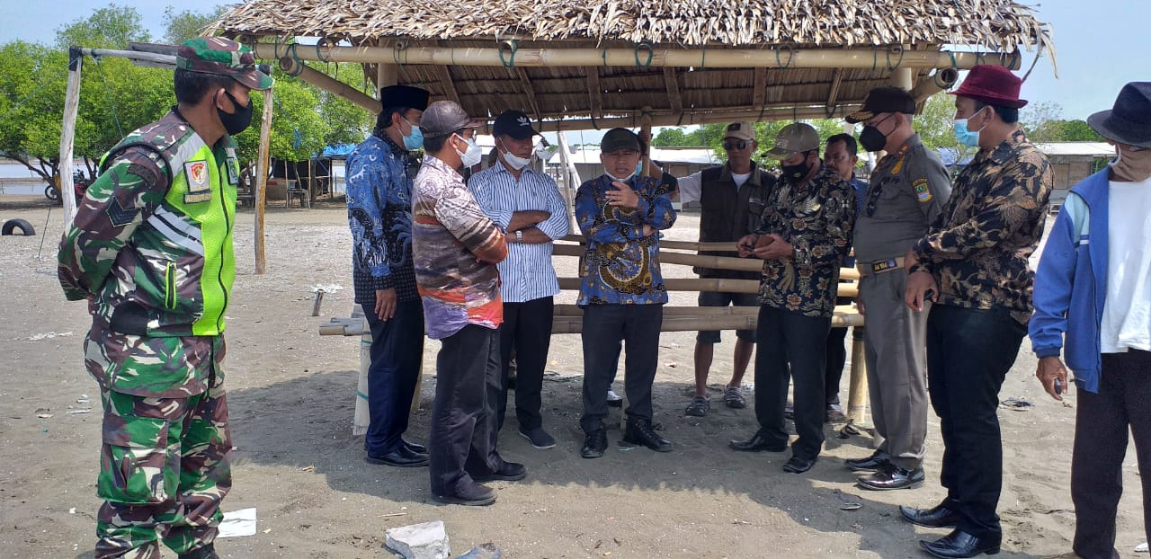 Anggota Koramil 03/Cabangbungin Babinsa Desa Pantai Bakti Kecamatan Muaragembong Kabupaten Bekasi Serma afrianto saat melakukan kegiatan mendampingi Ketua DPRD Kabupaten Bekasi dan Ketua Komisi II DPRD Kabupaten Bekasi yang sedang mengunjungi Desa Pantai Bakti yang merupakan Wilayah Binaannya .Kamis (06/05/2021).