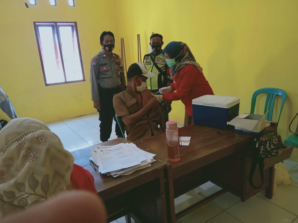 Babinsa Serma Siradjudin mengecek langsung pelaksanaan pemberian Vaksin Covid-19 kepada perangkat Desa. Sebelum divaksin, para penerima vaksin melaksanakan beberapa proses diantaranya, terlebih dahulu melaksanakan pendaftaran, dilanjutkan dengan pemeriksaan screening, kemudian dilakukan penyuntikan vaksin.