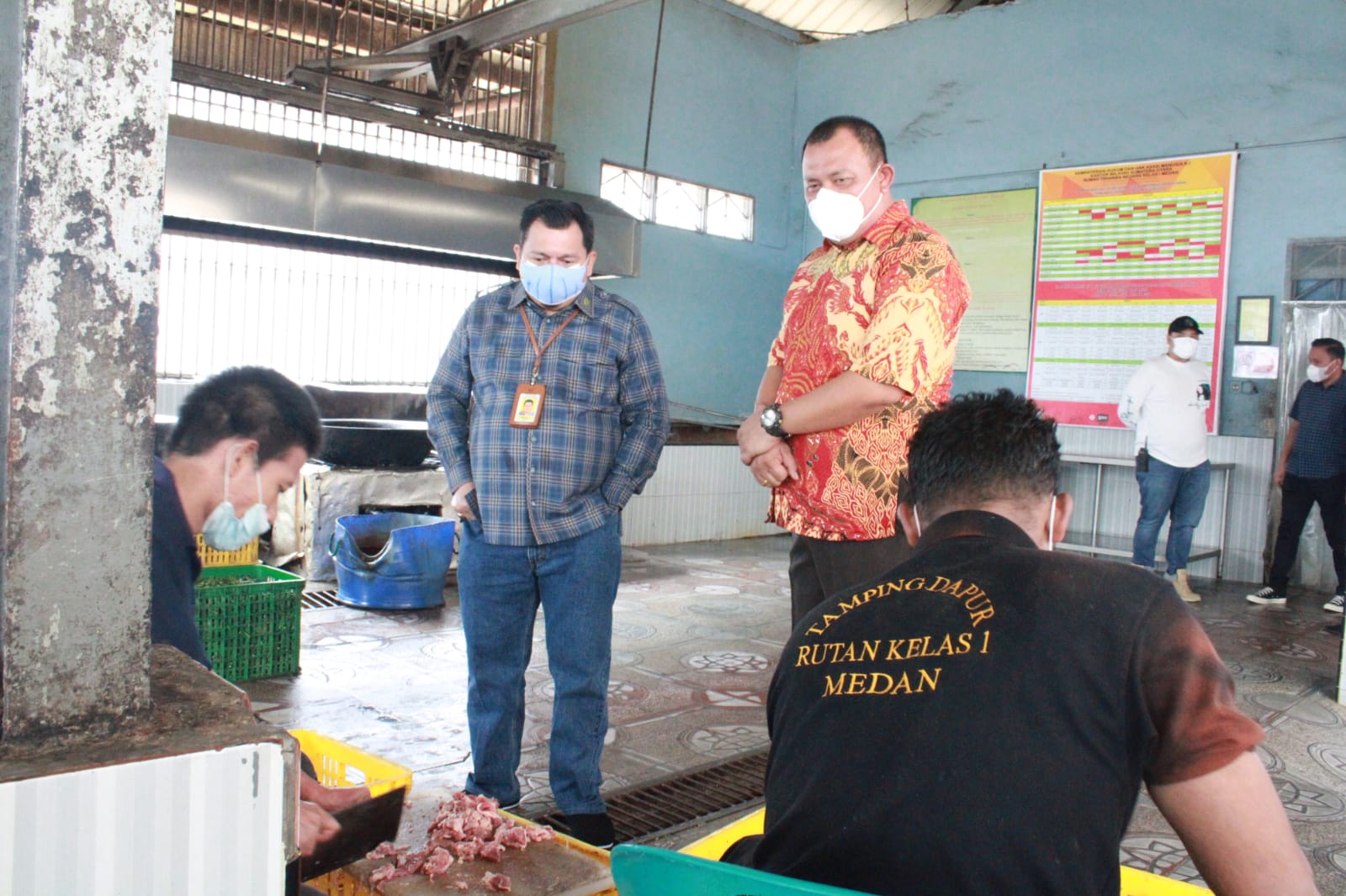 Mengawali kunjungan kerja ke areal dapur, Tenaga ahli utama kantor staf presiden menyaksikan proses pengolahan bahan makanan bagi wargabinaan mulai dari penerimaan bahan makanan, pembersihan sayur dan daging, penggorengan hingga pembagian pada wargabinaan.