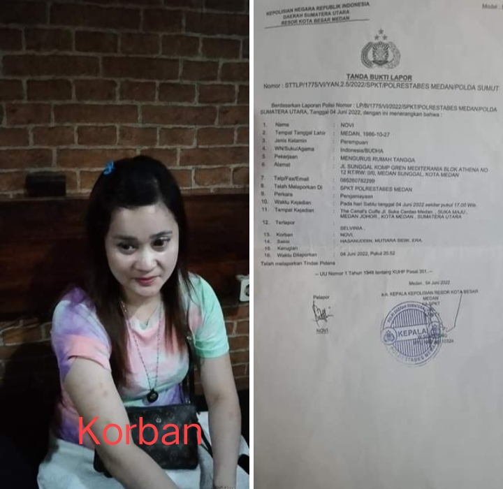 Disaat bersamaan, secara tiba- tiba seseorang berinisial SN warga Jalan STM Perumahan Grand Park Delitua yang berada bersama mereka, secara membabi – buta menyerang Novi hingga korban menderita luka cakaran di tangan kiri dan kanannya, serta mual dan pusing akibat penganiayaan dilakukan SN yang padahal tidak ada sangkut paut nya dengan hal arisan tersebut.