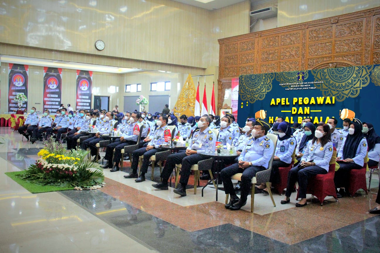 SEMARANG || ONTV.CO.ID – Mengawali hari pertama masuk kerja pasca libur bersama Idulfitri 1443 H, Kepala Kantor Wilayah Kemenkumham Jawa Tengah A. Yuspahruddin didampingi para Pimti Pratama serta para pejabat dan pegawai Kanwil Jateng hadir mengikuti Apel Pagi bersama yang dipimpin oleh menteri Hukum dan HAM Yasonna H. Laoly secara virtual dari Aula Kresna Basudewa, Senin (09/05).