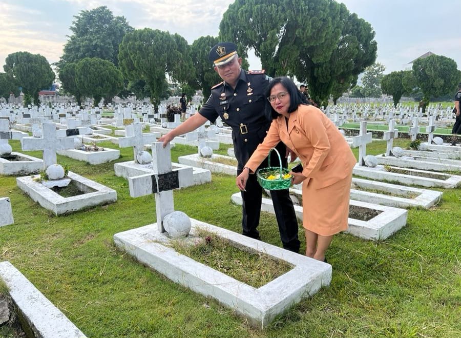 BINJAI || ONTV.CO.ID -Kepala lembaga pemasyarakatan kelas IIA Binjai, Theo Adrianus,A.Md.I.P.,S.H.,M.H didampingi Ketua Dharma Wanita Persatuan Lapas Binjai, Ny. Ulan Theo serta 10 orang petugas Lapas Binjai mengikuti Upacara Tabur Bunga dan Ziarah di Taman Makam Pahlawan Nasional Bukit Barisan Kota Medan, Jumat, (09/08/2024).