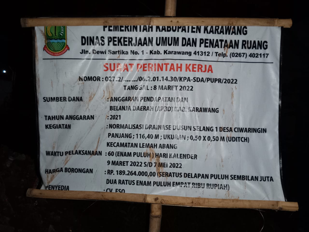 Proyek pemasangan u-dhitc di Dusun selang 1 Desa Ciwaringin kecamatan Lemahabang sesuai pantauan awak media sudah sesuai prosedur, karena dalam pelaksanaanya juga sudah terpasang papan proyek/ informasi yang artinya masyarakat dan papan proyek juga sudah terpenuhi dari awal pengerjaan proyek .(Ndang)