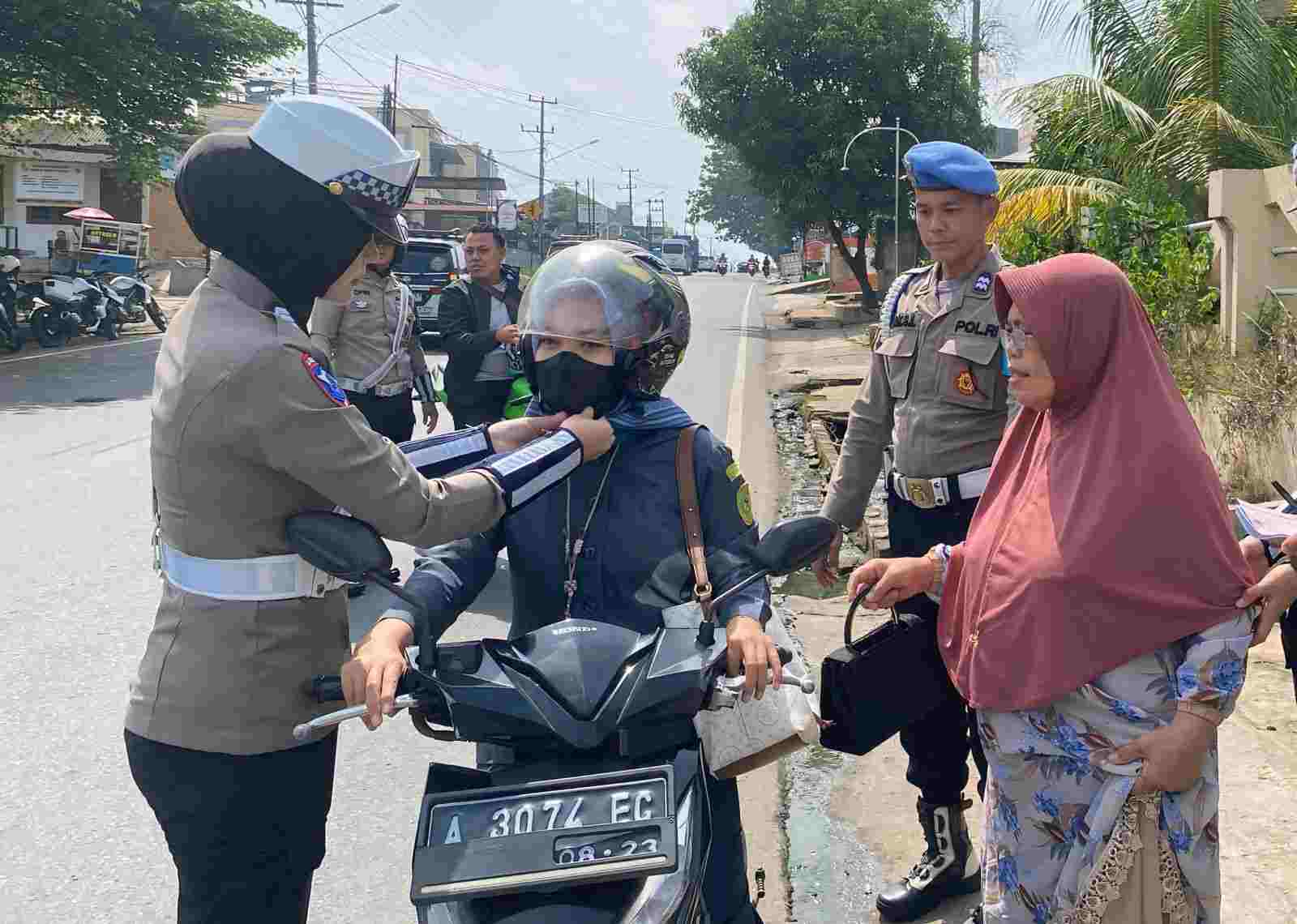 Hari ini, petugas mengadakan sosialisasi langsung kepada pengendara mengenai pentingnya menggunakan helm SNI, mematuhi rambu lalu lintas, serta tidak mengemudi dalam keadaan mengantuk atau terpengaruh alkohol.