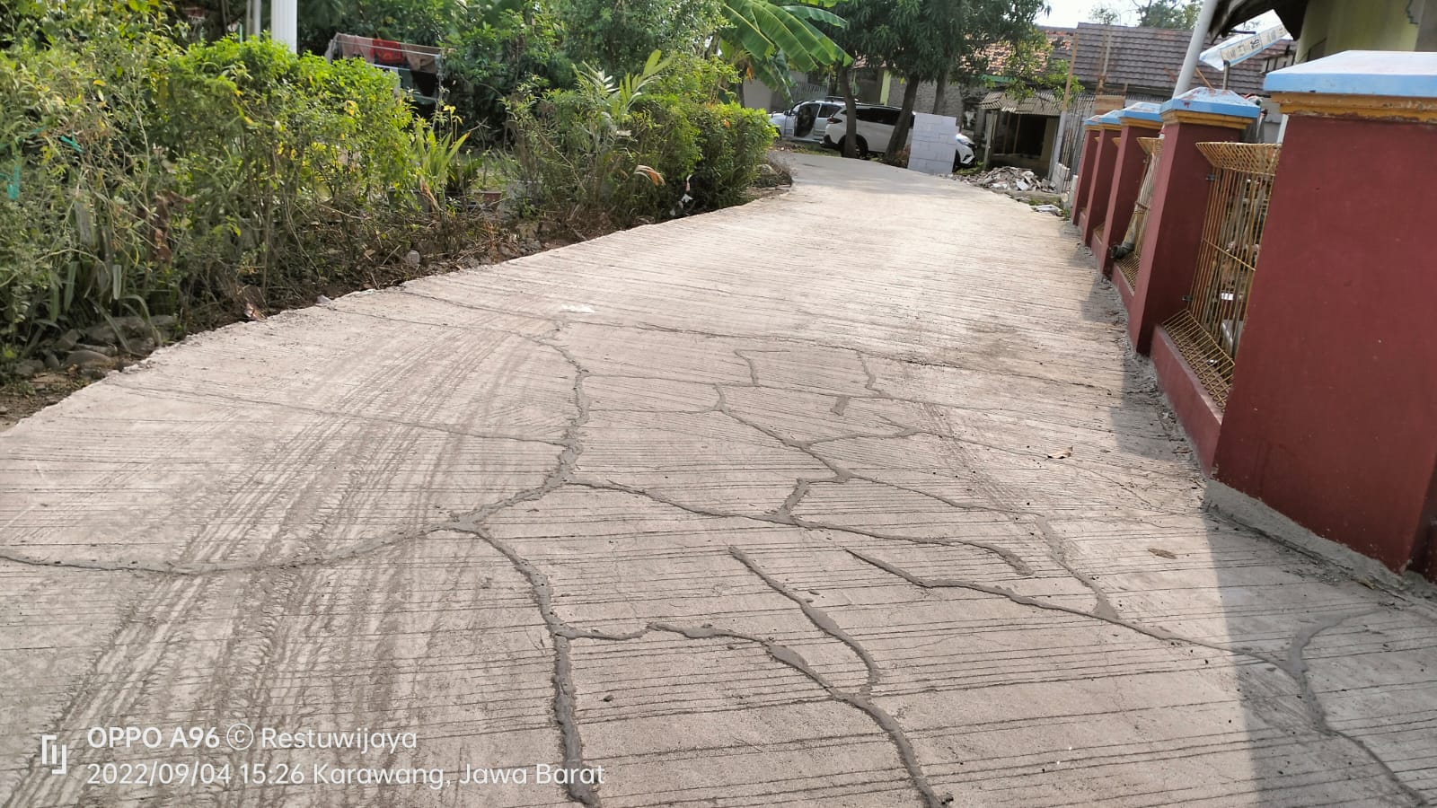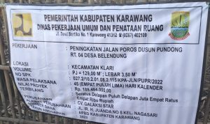 KARAWANG || ONTV.CO.ID – Lagi-lagi hasil pengecoran jalan menggunakan rabat beton terlihat pecah dan retak , padahal baru hitungan hari selesai di kerjakan yang lokasinya di dusun Pundong RT 04 Desa Belendung kecamatan Klari kabupaten Karawang Jawa barat.