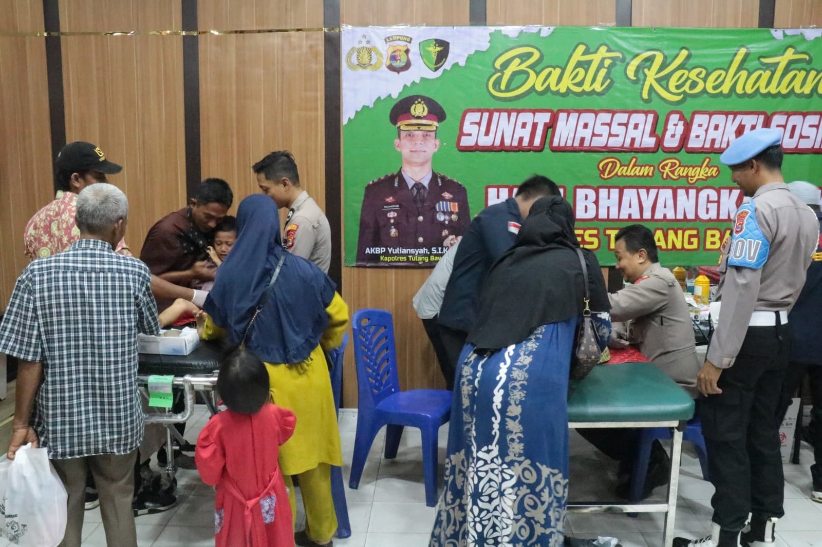 Kegiatan bakti kesehatan berupa khitanan massal gratis ini berlangsung hari Senin (16/06/2025), pukul 08.00 WIB s/d selesai, di Aula Wira Arya Mapolres Tulang Bawang, dan dipimpin langsung oleh Kapolres Tulang Bawang, AKBP Yuliansyah, SIK, MH.