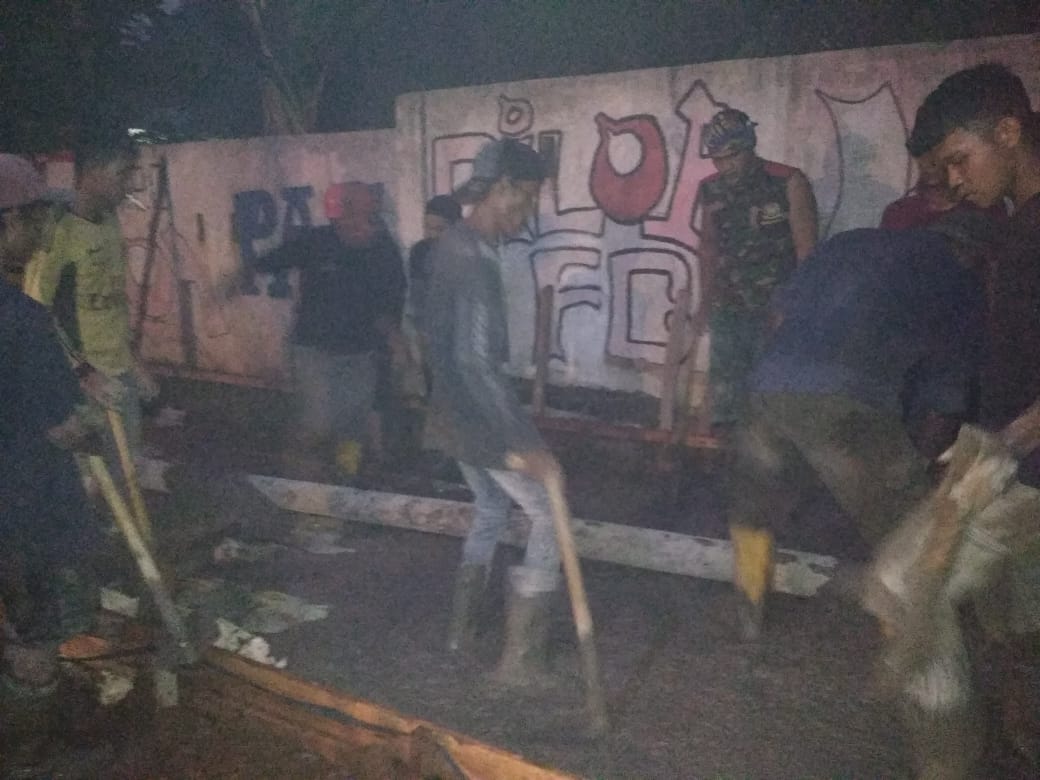 Gelapnya malam tak menyurutkan semangat Satgas TMMD dan masyarakat melakukan pengecoran jalan agar selesai tepat pada waktunya. Semangat untuk memberikan hasil yang maksimal dan bisa berguna bagi masyarakat, menjadi pendorong anggota Satgas dan masyarakat untuk segera merampungkan pengecoran jalan yang jaraknya lumayan panjang yaitu 210 meter.