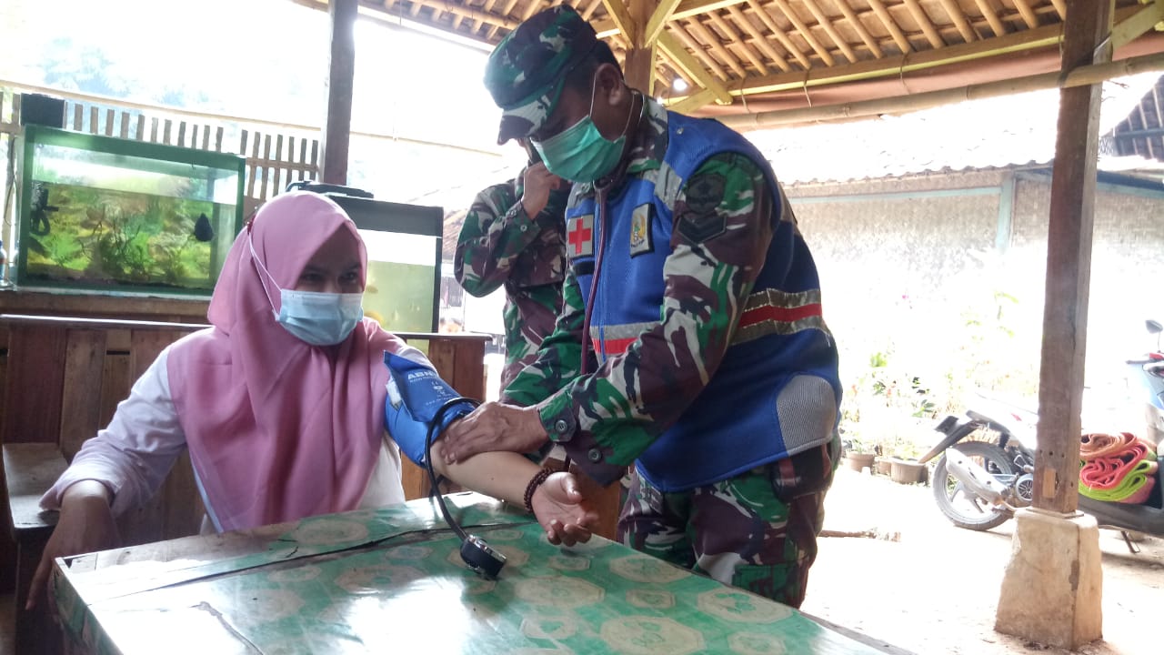 Sertu Anwar personil Keslap melakukan pemeriksaan kepada seluruh pasukan satgas TMMD dan Masyarakat yang ikut berperan dalam giat tersebut, diantaranya bapak dan ibu-ibu warga desa yang ikut membantu persiapan memasak makan siang untuk personil satgas.
