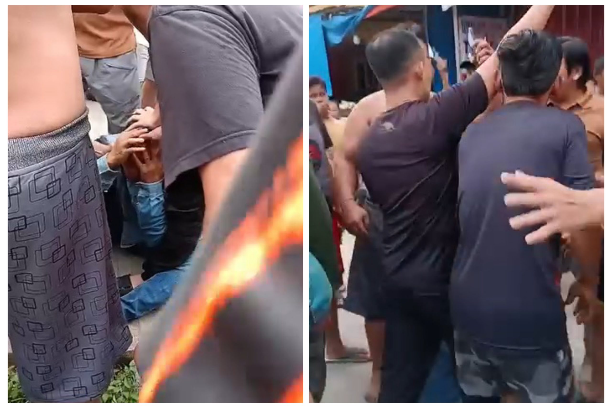 Nampak beberapa orang berusaha melerai agar pria tersebut tidak diamuk warga.