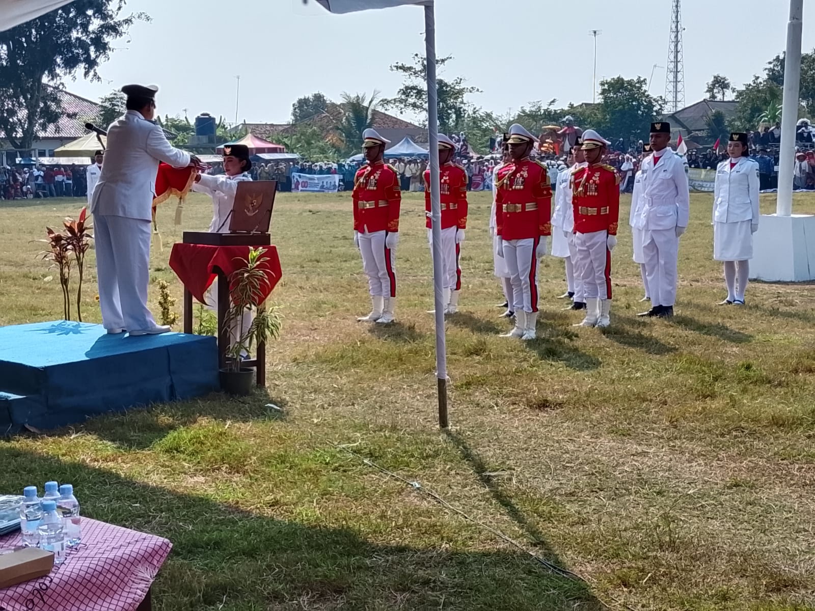 Upacara yang diikuti opeh 9 desa yang ada fi wolayah Kecamatan Blanakan, dipimpin langsung oleh Camat Blanakan, Cucu Wahyu, sebagai inspektur upacara. Bertindak sebagai Komandan Upacara adalah Letda Marinir Edi Carsidi, Danpos TNI AL Wilayah Blanakan Karawang. Perwira Upacara dipercayakan kepada Bripka Tri Sutrisno dari Polsek Blanakan.