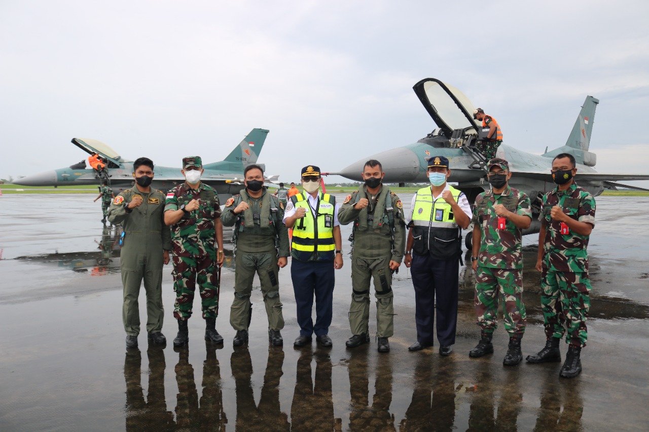 Panglima Kosekhanudnas III Marsekal Pertama TNI Mohammad Nurdin saat melihat langsung pelaksanaan kegiatan di Posko Terminal Cargo Bandara Internasional KNO mengatakan kegiatan ini merupakan Patroli rutin pengamanan wilayah perbatasan teritorial Kosekhanudnas III dengan menggunakan pesawat TS F-16 Falcon beramunisi aktif dari Home Base Lanud Roesmin Nurjadin.