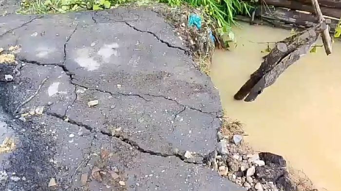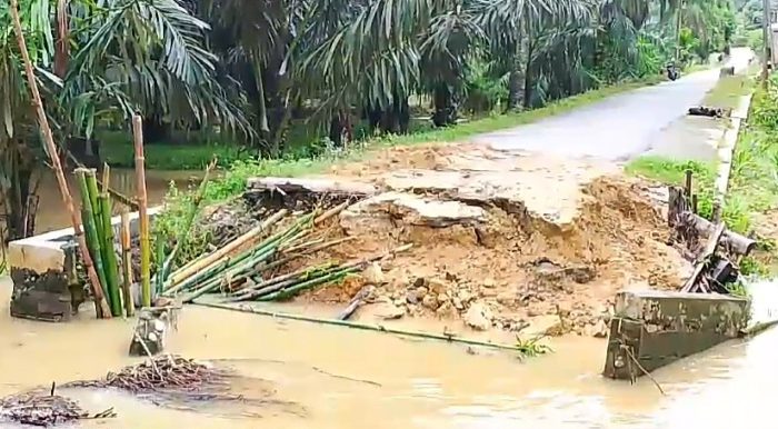 LABUSEL || ONTV.CO.ID – Jembatan yang dibangun dari swadaya masyarakat 20 tahun silam, saat ini telah raib hanyut diterjang banjir. Derasnya arus air Sungai Barak Sijambu akibatkan pondasi jembatan tersebut tergerus air sehingga kondisi jembatan penghubung jalan dusun tersebut putus.