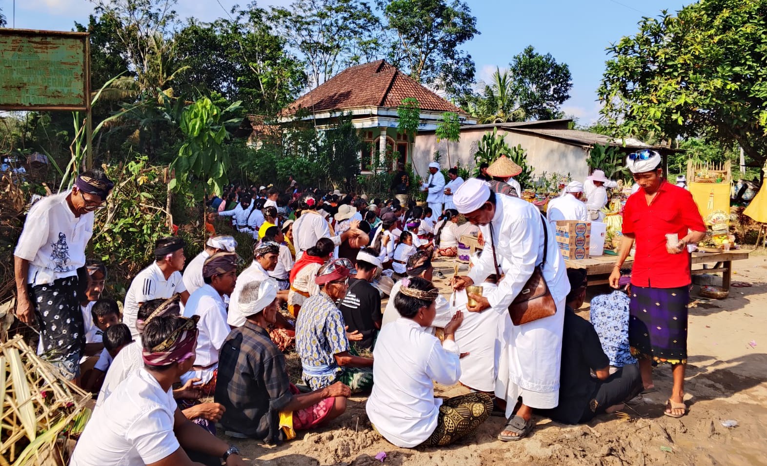 Ketua adat Bali Kampung Aji Permai, Yuli Salam, bersama Mangku Rian dan delapan Pecalang tampak memimpin jalannya prosesi dengan penuh khidmat. Kehadiran aparat dari Polsek Gedung Aji turut memastikan kegiatan berjalan aman dan kondusif.
