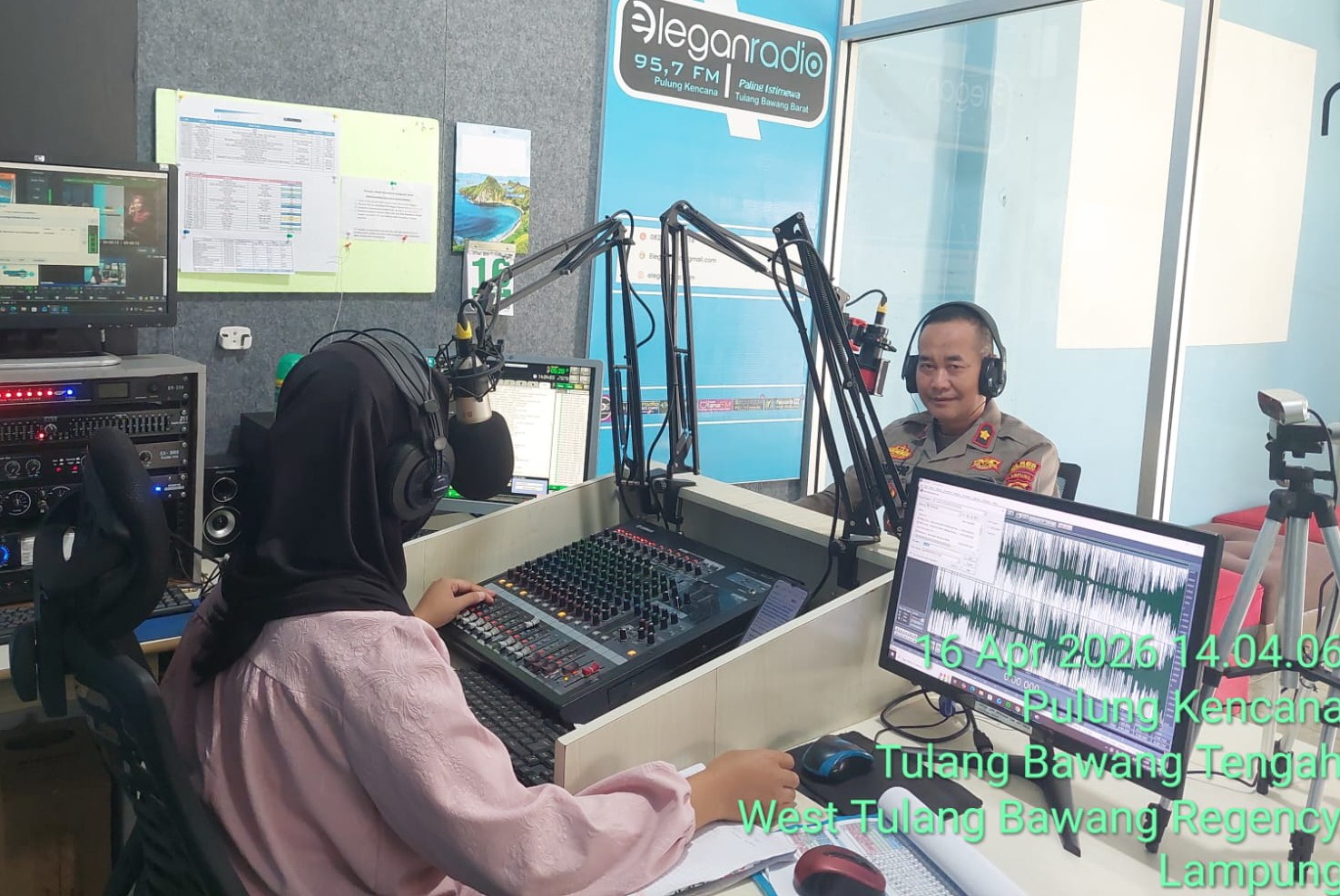 TULANG BAWANG BARAT II ONTV CO ID —— Berbagai cara dilakukan oleh Polsek Tulang Bawang Tengah Polres Tubaba, Polda Lampung dalam menyampaikan Pesan dan Imbauan Kamtibmas yang di sampaikan oleh Kapolsek Tulang Bawang Tengah melalui talk show di Radio Elegen 95,7FM Tiyuh Pulung Kencana Kec.Tuba Tengah Kab.Tubaba, Jumat (17/04/2026)