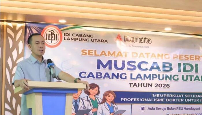 LAMPUNG UTARA II ONTV.CO.ID – Wakil Bupati Lampung Utara, Romli, secara resmi membuka Musyawarah Cabang Ikatan Dokter Indonesia (IDI) Kabupaten Lampung Utara yang digelar di Aula Serajo Bulan Rumah Sakit Handayani Kotabumi, Sabtu (18/4/2026).