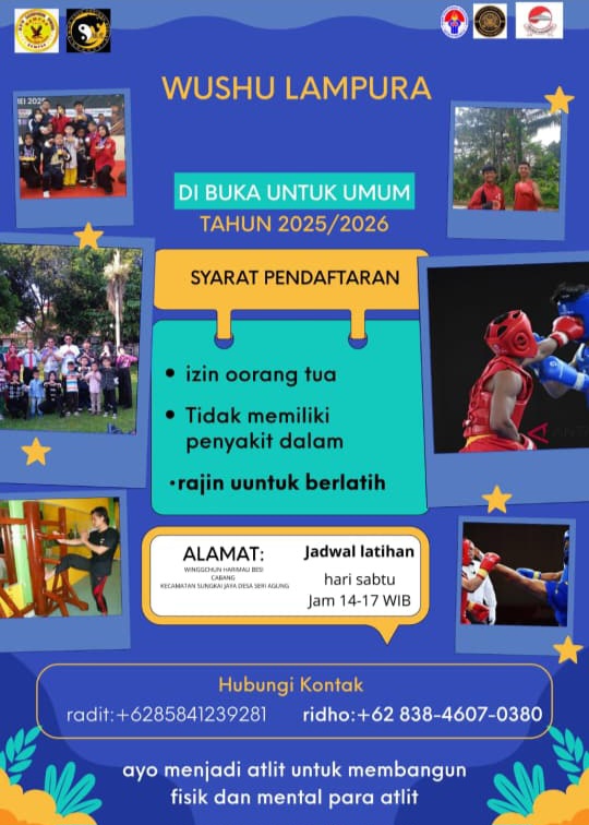 Bagi masyarakat yang berminat mengikuti pelatihan Wushu Wingchun Harimau Besi, pendaftaran telah dibuka untuk Kecamatan Sungkai Jaya. Persyaratan bagi calon peserta meliputi: