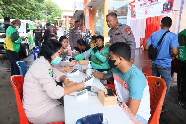 Pelayanan Kesehatan Gratis Hari Bhayangkara ke-79 Polda Sulut disambut Antusias Pengemudi Ojol
