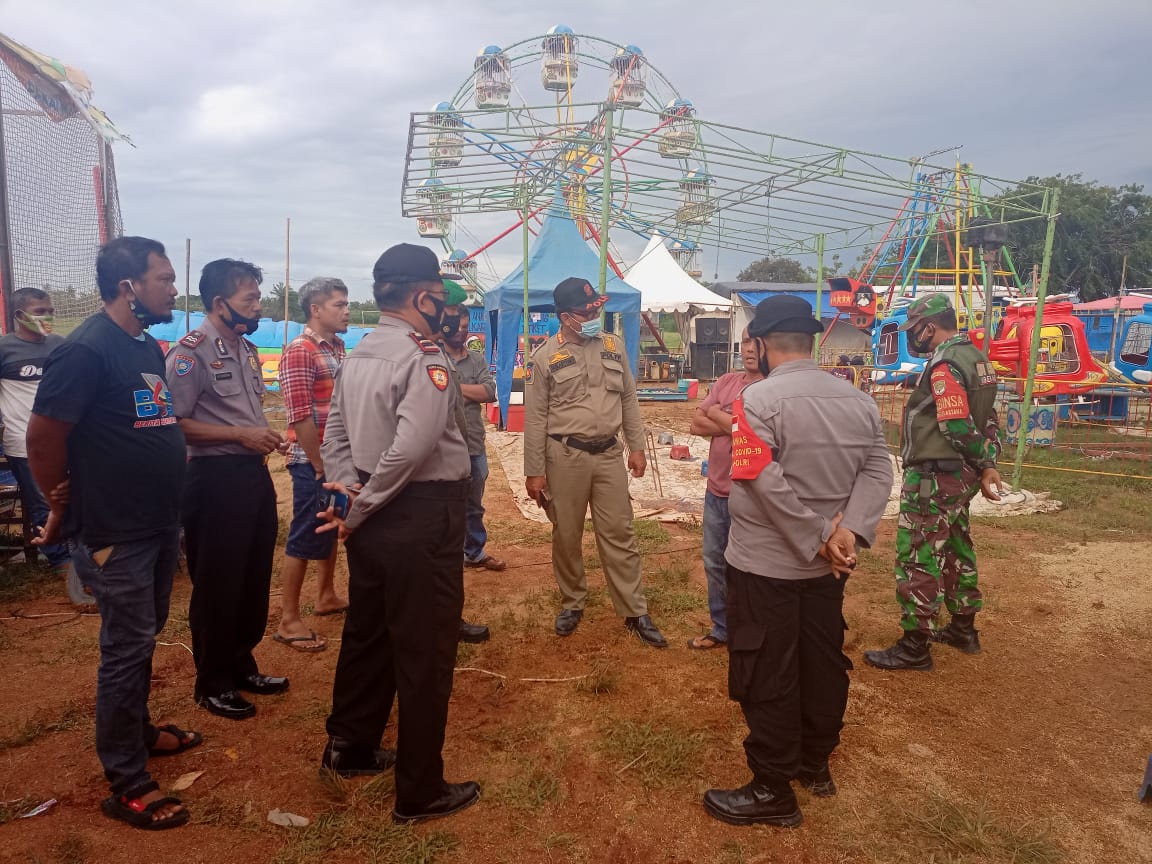 Dipimpin langsung MP Kasatpol PP Kecamatan Cabangbungin Sukartono bersama anggota Koramil 03/Cb dan Anggota Polsek Cabangbungin langsung mendatangi tempat hiburan pasar malam pada Jumat (18/12/2020) sore.
