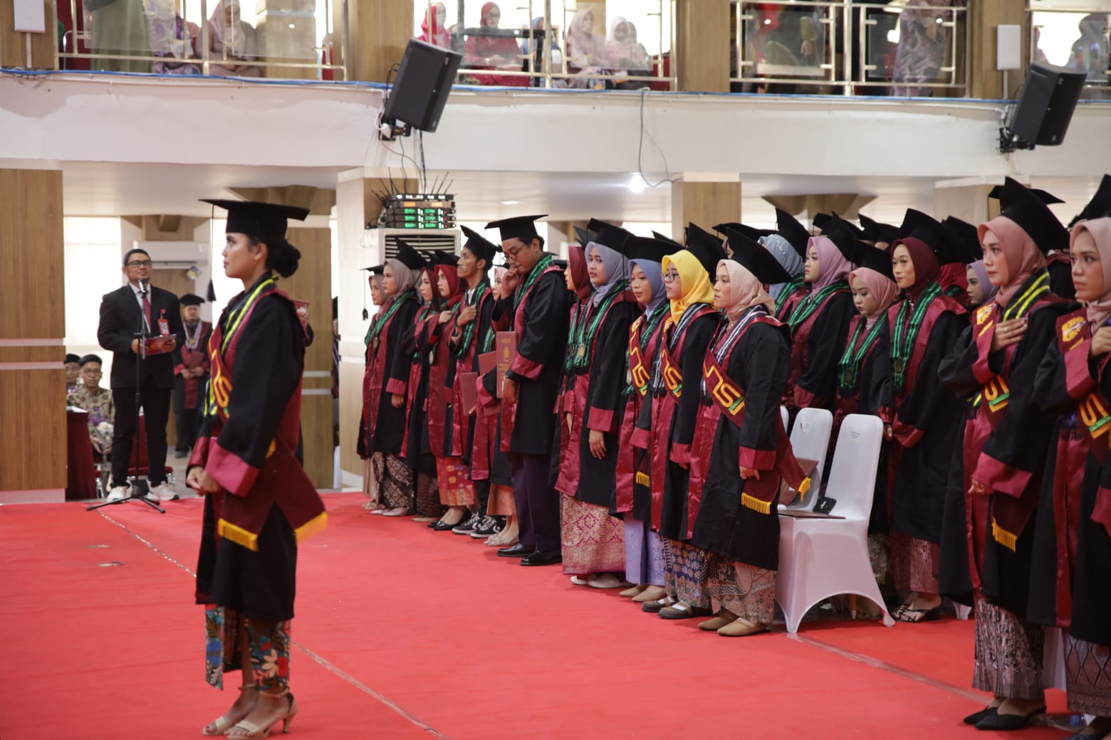 Prof. Ade Maman Suherman, SH, M, SC Universitas Singaperbangsa menyampaikan selamat dan rasa bangga kepada para orang tua/wali wisudawan wisudawati. Pada hari ini pula kami menyerahkan. Kembali anak anak kepada Bapak/Ibu Saudari yang telah ditiripkan kepada kami.