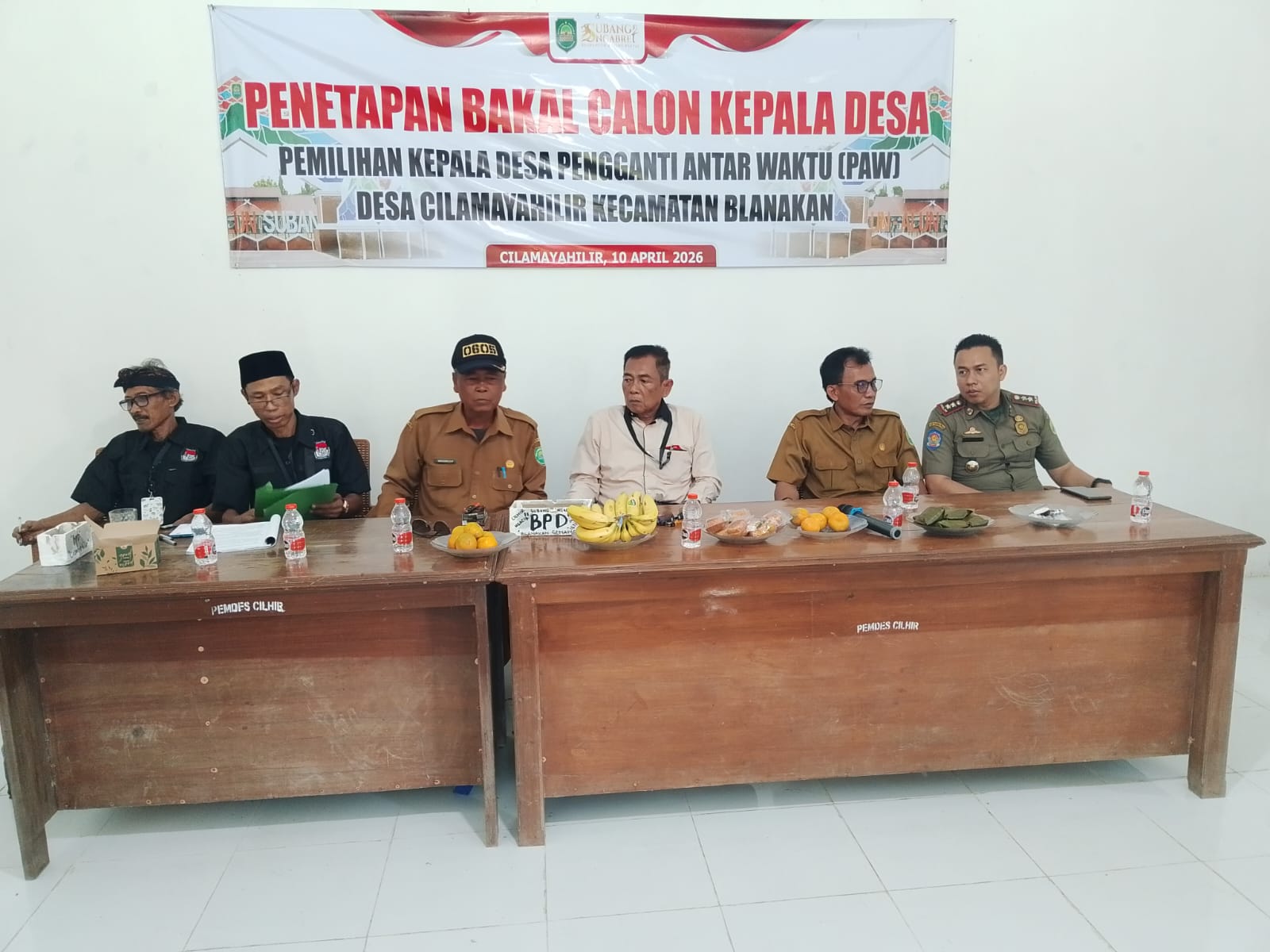 SUBANG-JAWA BARAT || ONTV.CO.ID – Panitia Pemilihan Kepala Desa Pengganti Antar Waktu (PAW) Desa Cilamaya Hilir, Kecamatan Blanakan, Kabupaten Subang, menggelar rapat penetapan musyawarah dusun (musdus) pada Senin, 20 April 2026, di Aula Kantor Desa Cilamaya Hilir.