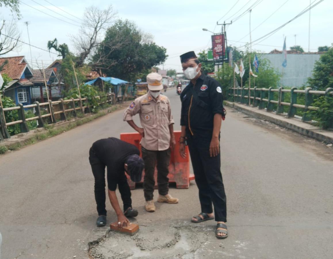 KARAWANG || ONTV.CO.ID – Pemerintah Desa Kedawung bersama Komunitas Kagok Edan (KKE) serta Kasie Trantib Kecamatan Lemahabang ,Wahdi, SH gerak cepat menutup lubang menganga dengan kedalaman 50 cm dan lebar lubang bardiameter 60 cm dengan coran di sekitaran jembatan jalan syekh quro tepatnya krajan Desa Kedawung perbatasan Desa Lemahabang Kecamatan Lemahabang karawang pada sabtu (20/11)