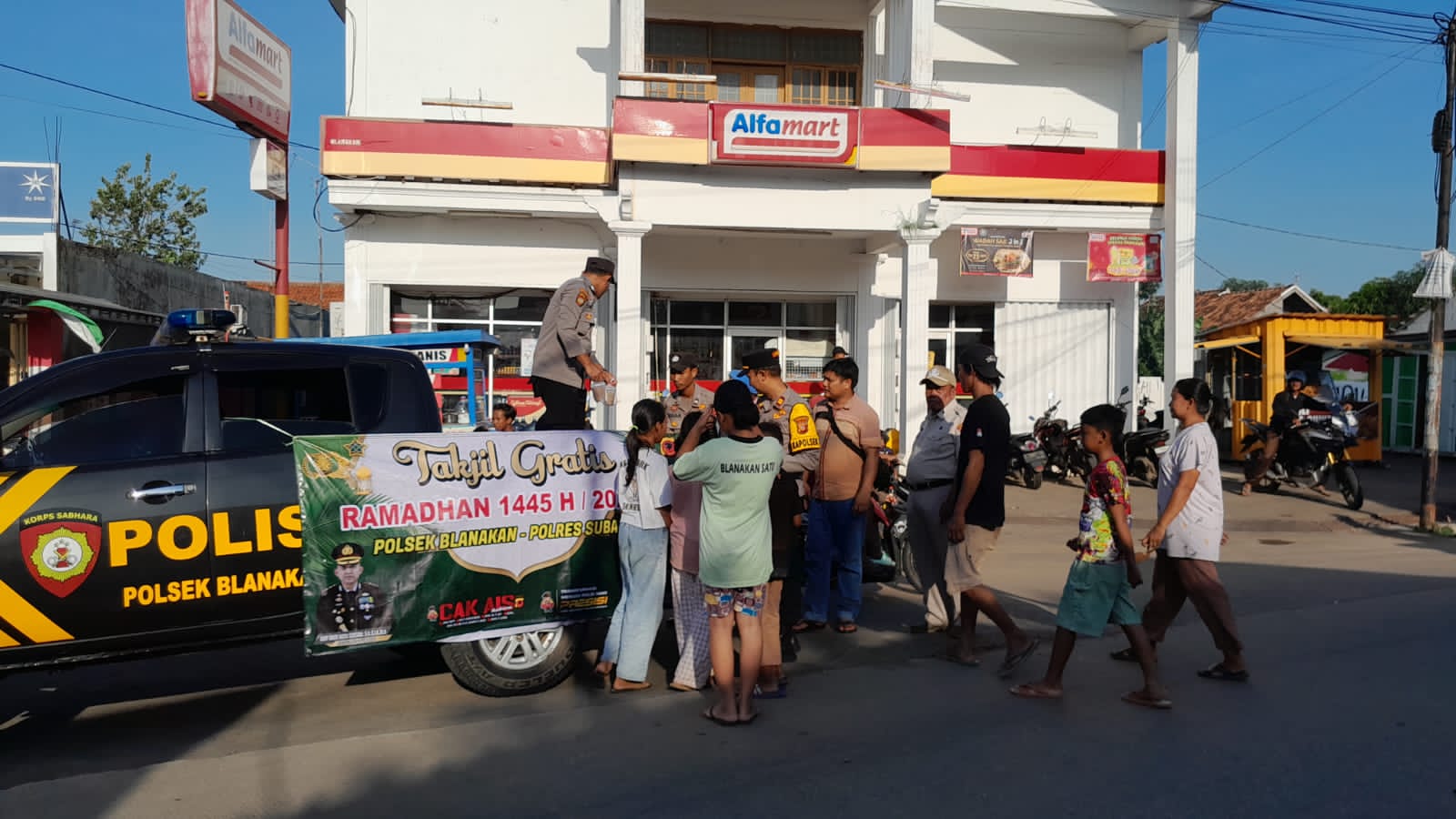 Dalam giat yang dilaksanakan sektar Pukul 16:30 WIB atau menjelang buka puasa tersebut, Personil Polsek Blanakan Polres Subang yang dipimpin langsung oleh Kapolsek Blanakan Iptu Andri Sugiarto, S. I.P., M. A. P.