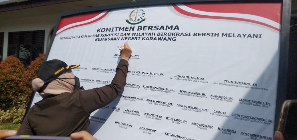 Apel diikuti semua unsur pimpinan dan staf Kejaksaan Negeri Karawang dilanjutkan dengan pembubuhan tandatangan komitmen Fakta Integritas bebas korupsi dan bebas gratifikasi.