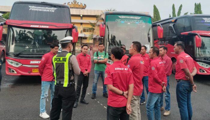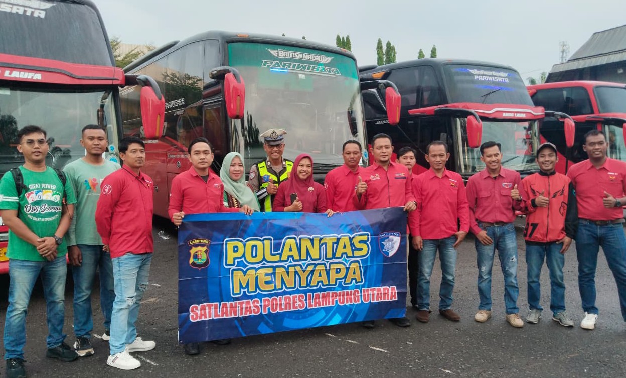 LAMPUNG UTARA II ONTV.CO.ID — Satuan Lalu Lintas Polres Lampung Utara melaksanakan kegiatan Polisi Menyapa dengan memberikan imbauan keselamatan berkendara kepada para pengemudi dan awak bus Sumatera Express (Sumex), Kamis (23/4/2026).