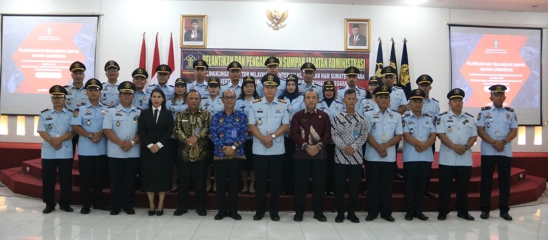MEDAN || ONTV.CO.ID Kepala Kantor Wilayah Kementerian Hukum dan HAM Sumatera Utara Imam Suyudi mengambil sumpah dan melantik pegawai dalam Jabatan Administrasi serta sertijab Karutan Kelas IIB Pangkalan Brandan.