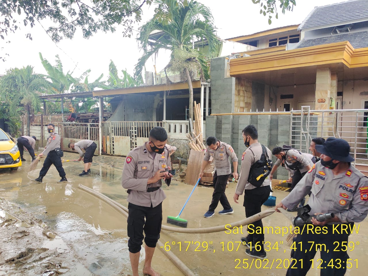 Kamis tanggal 25 Feb 2021 melalui Sat Sabhara Pimpinan AKP Hasanudin Bahar SH, kembali melakukan kegiatan Bakti Sosial Korve Paska banjir di perum Graha Festival, didampingi Kanit Patroli Ipda Yudha Herlambang SH, kanit dalmas Ipda Yoyo Waluyo bersama dengan 20 personil Dalmas Polres Karawang.