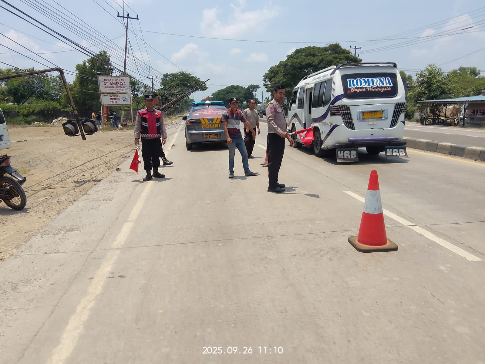 INDRAMAYU-JABAR || ONTV.CO.ID — Polsek Losarang menunjukkan respons cepat dalam menangani insiden robohnya tiang kabel internet yang hampir melintang di badan Jalan Raya Pantura, wilayah Losarang, pada Jumat (26/09/2025). Kejadian tersebut sempat mengganggu arus lalu lintas dan membahayakan pengguna jalan.