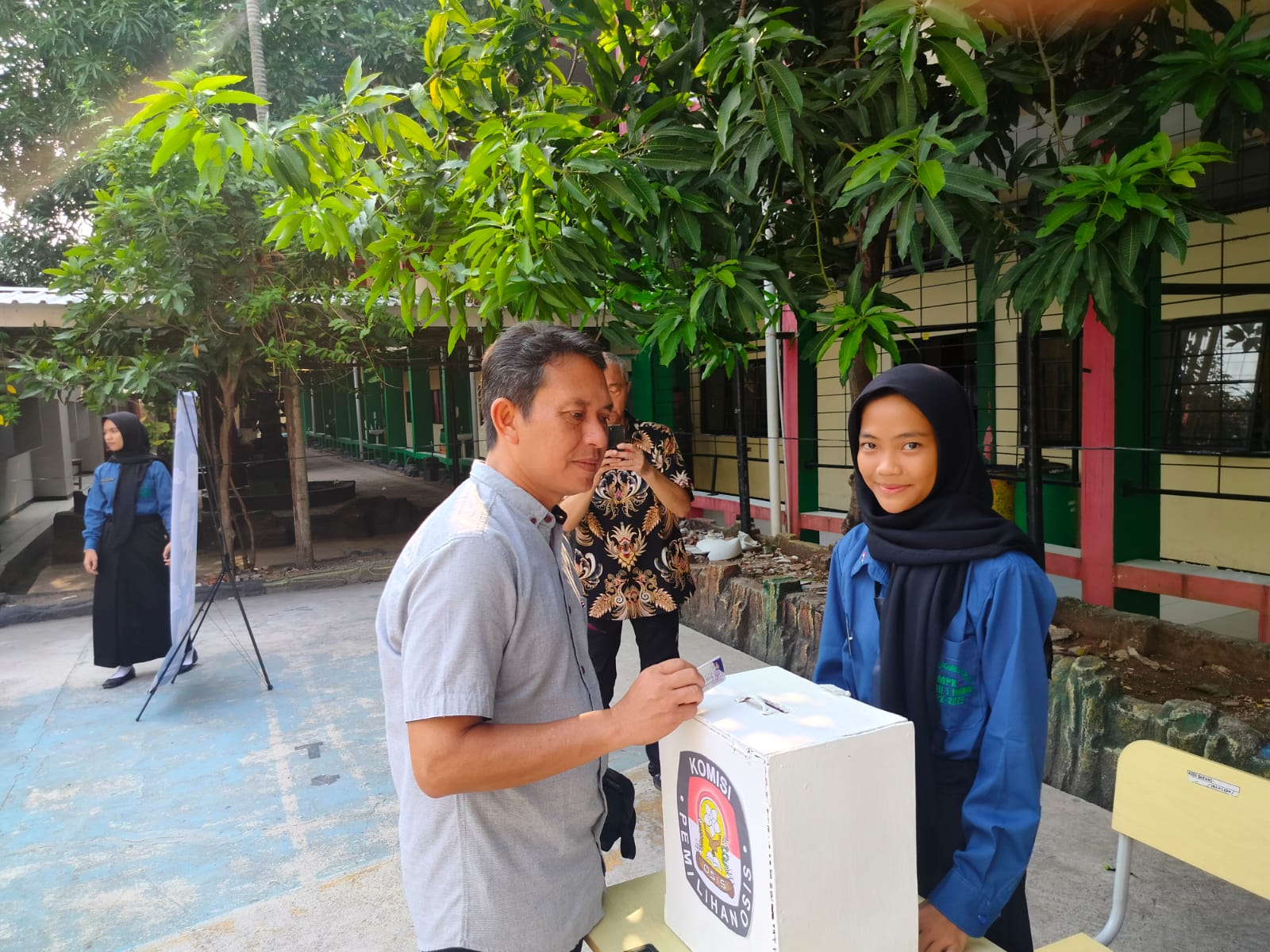 “saat setelah penghitungan suara akan disahkan nanti secara sertijab akbar atau secara terbuka. Harapan kami ini dengan adanya kegiatan seperti ini bisa menjadi wadah untuk pembentukan karakter anak dalam berorganisasi dengan baik, kemudian percaya diri dan percaya diri yang memang kita ajarkan di sekolah ini. Program ini tidak akan berhasil kalau tidak ada kerjasama dari bapak dan ibu guru yang ada di sekolah ini. Kami semuanya bekerja keras karena apa yang saya sampaikan di awal bahwa ini adalah kolaborasi dari kurikulum mereka dengan momentum pemilihan ketua OSIS. Dan ini menggunakan proses yang sudah dilakukan oleh bapak dan ibu guru. Hal betul-betul membimbing dan membina anak-anak kita dalam tahap dari mulai tata cara pemilihan kemudian melakukan hak dan kewajibannya.” Ungkapnya.