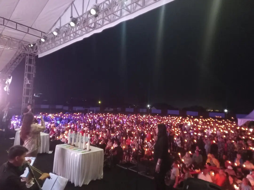 Hari kedua berlangsung tak kalah semarak. Meski sempat diguyur hujan rintik-rintik saat prosesi pemasangan lilin, ribuan jemaat tetap bertahan di tempat. Hujan yang reda seolah menjadi simbol penyertaan Tuhan dalam ibadah yang penuh hikmat.