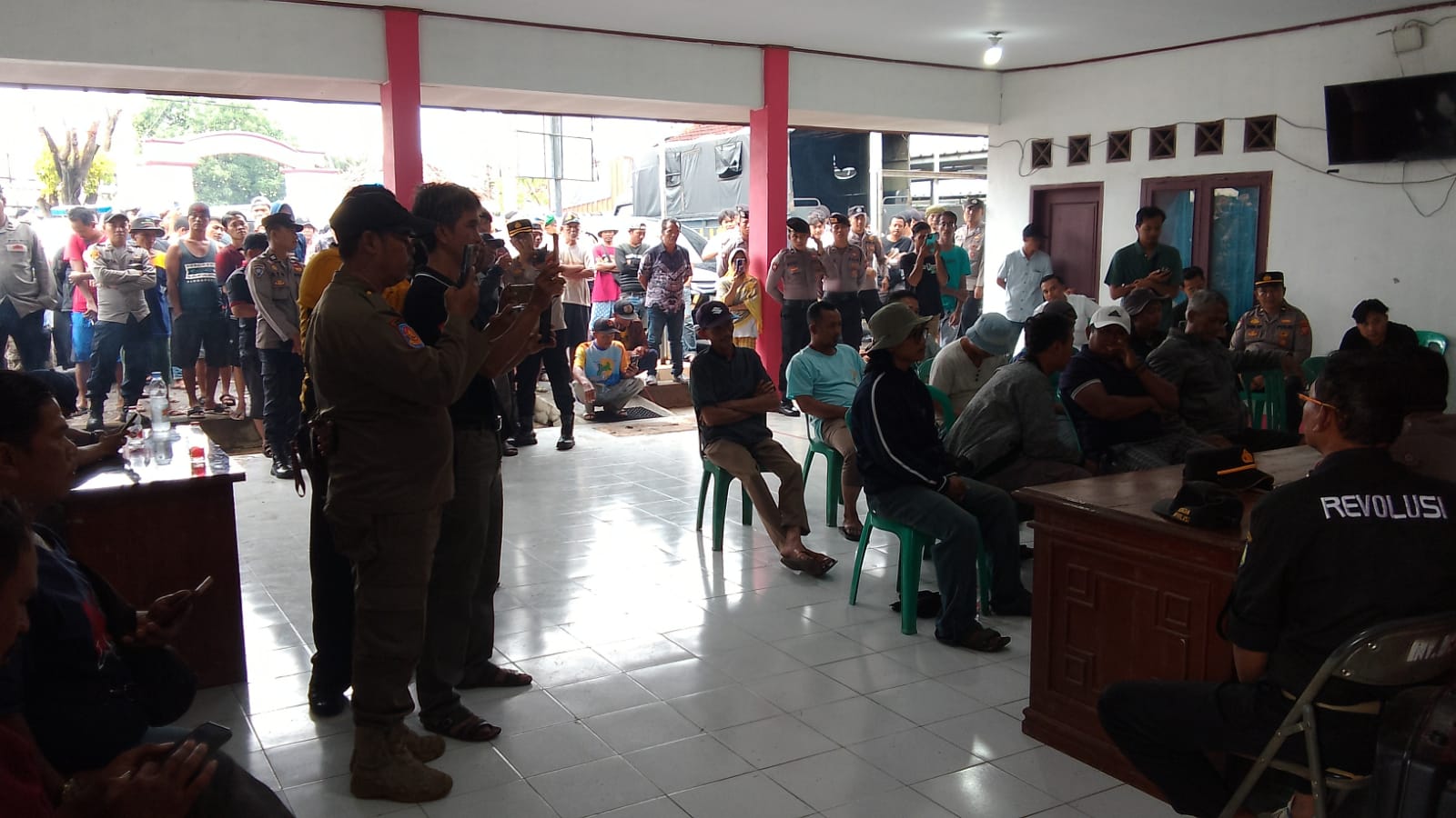 Di sisi lain, Kepala Desa Manggungan, Dain tampak menghadapi massa di Balai Desa sejak awal demo berlangsung.
