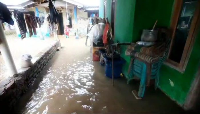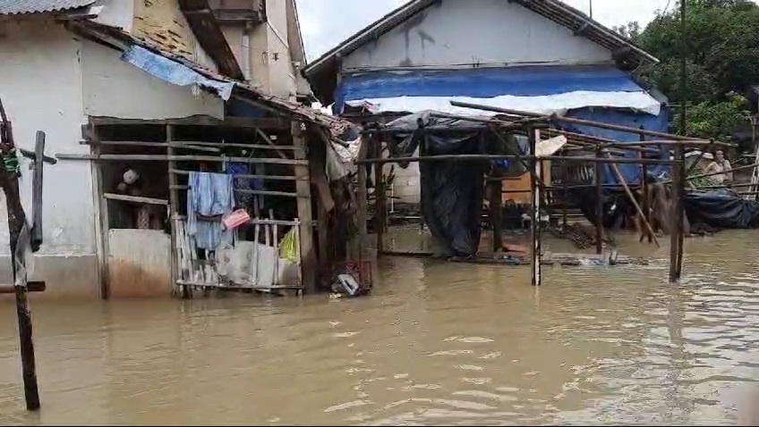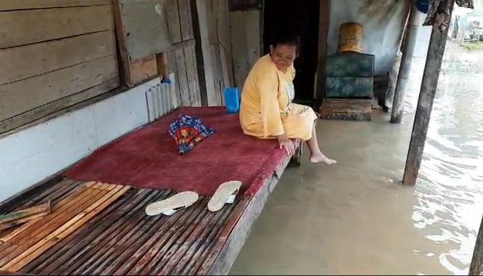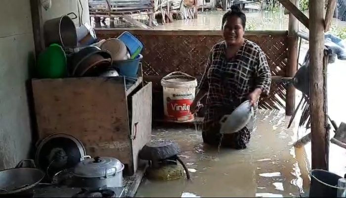 Meski banjir merendam pemukiman namum warga belum mengungsi karena dirasa masih aman.