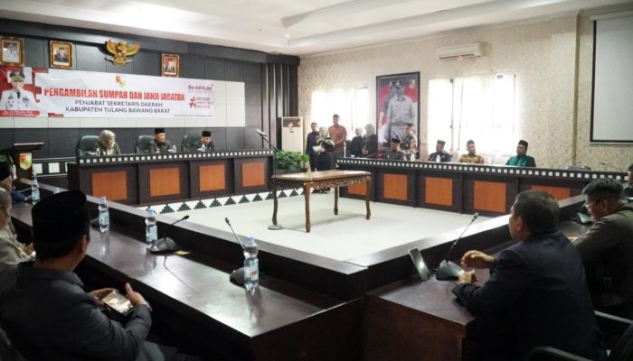 LAMPUNG || ONTV.CO.ID – Penjabat (PJ) Bupati Kabupaten Tulang Bawang Barat Drs. M. Firsada, M.Si., Lantik serta Pengambilan Sumpah Jabatan Terhadap Perana Putra, S.H., M.H., sebagai PJ Sekretaris Daerah (Sekda) Kabupaten Tulangbawang Barat, di ruang Rapat Bupati, Jum’at (31/01/2025).